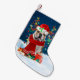 Engelska Bulldog i snö med julhatt och julklappar är en julklapp i perfekten för någon som kärlek i hund aveln.