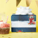 Engelska Bulldog i snö med julhatt och julklappar är en julklapp i perfekten för någon som kärlek i hund aveln.