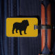 Bulldog Älskare Luggage Tag. Engelsk bulldog silhouette med anpassningsbar för ditt namn och adress. Identifiera din väska snabbt och behålla dina ägodelar korrekt märkta med det här akryliska väderbeständiga redskapet för påsen eller incheckningen. Finns i olika färg. En coola för hundälskare.