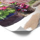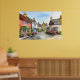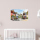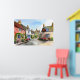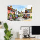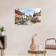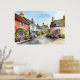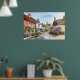 Poster av charmeringstugage med färgfulla fasader längs en kavaint bygata, omgiven av vibranta trädgårdar som flödar med blommor. A blå himmel slutför den idylliska, fredliga scenen.