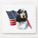 USA! Amerika! Skriv ditt pride med den här fantastisk-flagga patriotiska bakgrunden med denna engelska Cocker-spanjor från AKC hund aveln i förgrunden. Visa ditt pride med den här designen på en t-shirt, mugg och mycket, mycket mer!