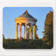 Titta ut ur Monopteros, ett öppet runt tempel, som byggdes i grekiska stil 1836 av Leo von Klenze. Fästade målningar på taket. Tyskland i en offentlig park, engelska Garden, München, Upper Bavaria.