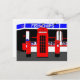 Samling av traditionella engelska ikoner - röd telefonlåda och röd postbox framför en fiskaffär och chip. Detta vykort har skapats med digitalt manipulerade fotografier. Perfekten vykort för den person som kärlek all sak engelska. sgb01