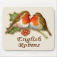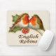 Två stora engelska Robins sitta på en Holly-snok med röda bär. Texten säger engelska Robins.