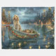 Sätt fart i julhelgens magi med denna vackert detaljerade illustration och visa en stolt hund sitta i en festivt dekorerad båt, som glider över en verklig jul sjö. Väntarna ljus från det närliggande gräs träd avspeglar sig utanför vatten och kastar en varm, feg glöd som förstärker den mysiga ambitionen. Ornament är farliga från båtens sidor, medan de lyser vägen och skapar en scen som fångar det verkliga kärnan i julens värme och glädje. Denna nostalgiska konst ger en aning helgdag magi åt vilket håll som helst, perfekt för dem som vårdar säsongens anda.