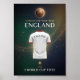 Celebrate the historic 1966 triumph of the England national team with this premium World Cup commemorative poster. This design features the iconic white "Three Lions" jersey with red trim and the single golden star earned during their legendary victory on home soil. Set against a dark, atmospheric background with shimmering gold accents and a classic vintage leather soccer ball, this high-quality print is a sophisticated tribute to English football heritage. A perfect gift for any England fan, ideal for a home office, sports room, or fan cave.