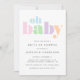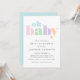 Fira mor-till-be med en dricks till babydusch. Denna minimala moderna och könsneutrala inbjudan präglas av "åh baby" i ett regnbåge av pastellartad, blå, grönt, rosa, lila och orange av stor typografi. Du kan enkelt anpassa dig med enheten genom att duscha detaljer, t.ex. var och när du ska köra förbi, områden för en gåva och behandlingar, säkerhetsföreskrifter, om hon ska öppna presenten då eller vara värd för en live facebook-, instagram- eller annan online-händelse för att ta bort presenterna, registerinformation och var du kan få mer information.