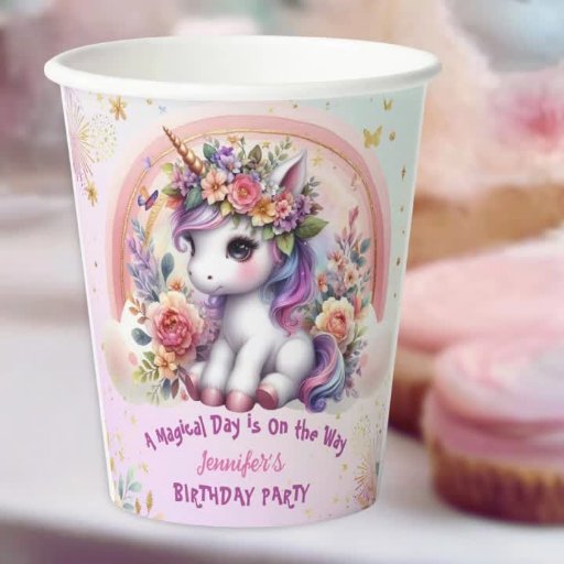 Enhörning 10-års födelsedagsflicka Rosa blommig re Inbjudningar