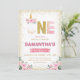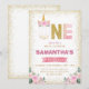 Enhörning 1-års födelsedag med rosa blommor i guld inbjudningar