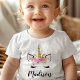 Gör din lilla en magisk känsla med denna söta personliga enhörning t-shirt! Med ett sött enhörningsansikte med gnistrande guldfärgade accenter och en blomsterkrans är denna skjorta perfekt för små flickor som älskar allt som är fantastiskt. Personifiera den med ditt barns namn för att skapa en unik och speciell present.