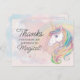 Fira din lilla enes födelsedag med stil med dessa magiska, enhörning födelsedagsfest tack kort! Denna roliga och färgglada design har enhörning och regnbågs grafik och en livfull färgpalett inspirerad av fantasifulla sagor.