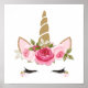 Enhörning Guld Blommig Söt Trendig Affisch