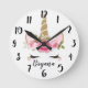 Enhörning Guld Rosa Blommig Söt Trendig Sovsal Run Rund Klocka