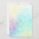Födelseinbjudan med en enhörning omgiven av konfetti, som håller i Färgglada födelsedagsballonger. Perfekt för en flickas födelsedagsfest. Barn som älskar enhörningar kommer att älska detta söta födelsedagskort.