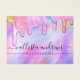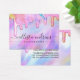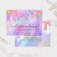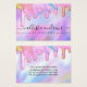 Denna flickiga och glamorösa display-kort för örhängen med låg hängande design är det perfekta sättet att förgylla din förpackning och lägga till din egen personliga touch och personlighet. Den har falska tryckta gnistrande enhörning-regnbågsfärgade tjocka glitterdroppar på en holografisk iriserande bakgrund. Typografin är ett elegant kursivt skript med ett modernt serif-teckensnitt för att matcha. Färgpaletten inkluderar rosa, persika, blå, lila, gul och korall. Den är chic, söt, unik och lyxig; det perfekta sättet att annonsera ditt företag och förgylla ditt marknadsförings- och reklamaterial för dina kunder. (Örhängeshål är endast tryckta markörer, punktering måste utföras av kunden)