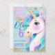 Enhörning-inbjudan med regnbågsskimmer för flickor inbjudningar
