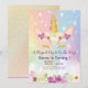 Denna magiska enhörning 1-års inbjudan är säker på att behaga! Vackra regnbågsfärger med glitterguld enhörning gör en unik och speciell inbjudan för din super speciella 1-åring.