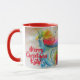 Regnbåge Enhörning God Jul Målning Mugg, med ett helt anpassningsbart namn. En fantastisk kattdesign. Designad från mina originalmålningar i akvarell.