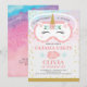 Enhörning Pyjamas Party Inbjudan - Här är din stora chans att glänsa med vår fantasifulla enhörning sömn/pyjamas fest inbjudan. Med en spektakulär enhörning omgiven av en färgrik, stjärnig bakgrund. Inga enhörning tårar här - bara fantastiska, fantasifulla roliga tider.Gör din lilla enhörnings stora dag magisk!