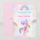 Vi älskar söta enhörningar och regnbågar, speciellt när de pryder en inbjudan till ett party. Här har vi en inbjudan som har allt: stjärnfall, regnbågar, ballonger och regnbågskumlar, komplett med en bedårande enhörning. Mottagarna av detta charmiga kort kommer att fyllas med spänning och förtjusning vid tanken på den magiska festen.