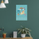 En affisch som säger "lille drömmare" men kan ändras / anpassas för att säga något annat. Designad med vita prickar längs den nedre kanten på en blågrön bakgrund. En glad enhörning leker under en färgglad regnbåge med fluffiga moln. Blommor, fjärilar, hjärtan och jordgubbar lägger till en charmig touch till denna handritade klotter-liknande design.
