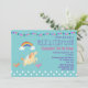 En magisk födelsedagsinbjudan för barn. Designad med vita prickar som dekorerar den nedre kanten på en blågrön bakgrund. En glad enhörning leker under en färgrik regnbåge med fluffiga moln. Blommor och en färgrik flaggkedja lägger till en charmig touch till denna glada inbjudan. På baksidan finns ett sött födelsedagsfår, födelsedagstårta och party-lejon.