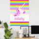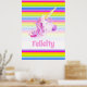 Enhörning rosa och regnbågsränder anpassat namn poster