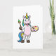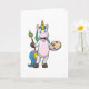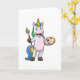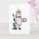 Enhörning som målar med pensel och färg kort