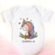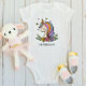 Enhörning Söt Whimsical Rosa Blommig Personlig Namn Babyflicka Bodysuits har en söt enhörning med stjärnor, hjärtan och blommor. Perfekta presenter för små flickor för baby shower, nyfödd, födelsedag, jul, helgdagar och mer. Designad av ©Evco Studio www.zazzle.com/store/evcostudio