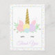 Enhörning tacksamhetskort med söta pastellfärgade enhörningsansikte på en snygg pastellfärgad prickig bakgrund. Detta enhörning tacksamhetskort kan enkelt anpassas med det meddelande du önskar i den typsnittsstil du föredrar.