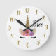 Enhörningshorn Guld Glitter Blommig Fantasi Anpass Rund Klocka