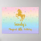 Enhörningsfest fotobakgrund med söta hawaiiska ikoner, personlig med hälsningar, ditt barns namn & ålder,