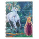 Spiralanteckningsbok med en fantasikonst illustration av en enhörning som springer genom skogen och möter en ung flicka. "Möte i skogen" konstverk upphovsrätt: Dominic A. White. Alla rättigheter förbehållna.