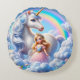 Enhjörningsprinsessa Regnbåge Rund Kudd ~ Pastell Fabel Rum Inredning för Flickor, Barnkammare och Magisk Gåva