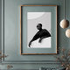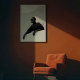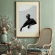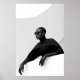 Gör ett slående påstående med det här fängslande svartvita tryckeriet, en mästerlig visning av avant-garde mode och konstnärligt uttryck. Den här övertygande profilen porträtt har ett kraftfullt figur med slimmad solglasögon och ett dramatiskt svart klädesplagg, försluten med en framträdande cirkulär brosch. Hennes mörk skapar en meriserande kontrast mot det pristina vita arkitektoniska kurvor som utgör hennes bakgrund, som betonar det skulpturella linjerna av hennes attike och attire. De långa svarta handböckerna och den höga turtätheten bidrar till en aura av mystisk elegans och chic av futuristiska. När du lutar dig på en vit yta präglas den här teckningen av en säker och enigmatisk närvaro. Perfekt för moderna livsmiljöer, studioer i mode eller någon dekanter som vill ha en aning av unik sofistikering, djärv konst och en verkligt oförglömlig visuell berättarröst.