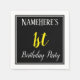 Den här enkla och elegant pappra napkin-designen innehåller ett meddelande som "Namehär's 1st Birthday Party", med "1st" i finare gult-färgad, inom ett fyrkantigt område med svart färgad med en enkel kontur från gräns. Namn kan anpassas. Napkins som dessa kan kanske användas i en födelsedagsfest till någon som firar sin första födelsedag. [~Z0000150]