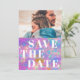 Tittar för en elegant i bröllop spara datum med foto? Titta på vår enkla 1-foto-feta Opal Stone och White Bröllop spara datum. Med fet kalligrafi som tillför en aning sofistikering kan du spara datumet med ett rent, enkelt utseende. Du kan anpassa texten och lägga till ett enda foto med en personlig beröring. Denna minimalistiska bröllopsinbjudan har en modern tvist som är bunden att fånga dem med öga för subtil sofistikering. Det moderna bröllop spara datum-kortet har en vacker digital opalsten och guld-effekt.