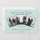 Meddela din vigseldate till vänner och familj med denna moderna enkla 3-fotocollage Save the Date. Meddelandets design har tre fotoutrymmen för det lyckliga paret, ren textdesign och ett elegant diamantmönster på baksidan.