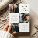 Eleganta bröllopskort att spara datum på, exklusivt designade för att visa tre av dina favoritfoton, vackert graverade med titeln 'spara datum'. Anpassa dessa kort med ytterligare information, era namn, datum och bröllopsplats.