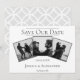 Meddela din bröllopsdag till vänner och familj med denna moderna Enkla 3 Fotoskollage Spara Datum. Tillkännagivandet har tre fotoutrymmen för det lyckliga paret, ren textdesign och ett elegant diamantmönster på baksidan.