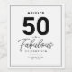 Enkel svart och vit "50 och Fabulous"-födelsedagsfest med klassi- och elegant-typografi. Anpassa den enkelt med åldern, namn, party datum och plats. Perfekt för födelsedagspresent eller partiförmån.