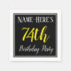Den här enkla och elegant pappra napkin-designen innehåller ett meddelande som "Namn-här's 74:e Födelsedagsfest", med "74:e" i finare gult-färgad, inom ett fyrkantigt område med svart färgad med en enkel gräns kontur. Namn kan vara personlig. Napkins som dessa kan kanske användas i en födelsedagsfest till någon som firar sin sjuttiofjärde födelsedag. [~Z0000150]
