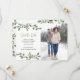 Dessa underbara minimalistiska "save the date"-kort för bröllop har enkla, akvarellmålade gröna blad på en ren, vit bakgrund med ert foto. Modern text med seriffer blandat med trendig, förgylld script-typografi ger en fräsch look som gör detta "save the date"-kort perfekt för er rustika, minimalistiska eller eleganta stil.
