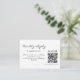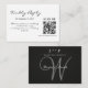 En vacker personlig och anpassningsbar, enkel Elegant än: Svartvit med Monogram bröllopsinbjudan. Ett bröllop-kort för hölje i bröllop som leder gästerna till webbplatsen där de kan OSA och hitta all din bröllop-information samt ett QR-exempelfoto för mer bekvämlighet, som du enkelt kan byta ut och anpassa. Ändra enkelt alla aktuella detaljer. Trendig och chic men elegant och tidslängd - koordinerar på ett utmärkt sätt med så många av dagens bröllop stilar, så att du kan anpassa och personlig med bröllop-texten. Utformningen har namnen för bruden och brudgummen i ett skript för elegant med oformaterat teckensnitt. Visas i ett svartvitt tema med en svart bakgrund trasa baksida, men kan anpassas till bröllop färg för text och bakgrund. Lägg till annan grafik, text eller monogram för att anpassa mallen i "Redigera med verktyg i designläge " nedan.