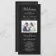 En vacker personlig och anpassningsbar, enkel Elegant, svart och vit med Monogram | Modern Bröllopsprogram/Modern hand Lettered Bröllopsprogram för ceremonin i bröllop. Byt ut exempelfotot mot ett eget och använda fält för att enkelt lägga till texten. Menyn Anpassa kan också användas för att ändra färg i teckensnittet och bakgrunden till kostym med bröllop färg-schemat. Trendig och chic, elegant och tidslängd - samordnar på ett utmärkt sätt med så många av dagens bröllop stilar. Visas i ett svartvitt tema med svart bakgrund trasa, men kan anpassas till bröllop färg för text och bakgrund. Lägg till annan grafik, text (storlek, färg, position, typsnitt i redigera design verktyg nedanför alla mallar) eller monogram för att anpassa mallen.