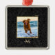 Enkel Anpassningsbar Pet Namn Photo Black Botanical metall jul med guld monogram, vitt skript namn och guld.