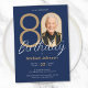 Enkel Anpassningsbar Foto Guld Navy Blue 80 Birthd Inbjudningar