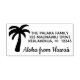 Denna anpassningsbar, personlig, roligt, tropiska returadress, frimärke har en silhuett av en enkel kokosnöt handflatan träd. Aloha från Hawaii och ett stickprov från namn. — Lägg till ditt namn och adress i mallen för att anpassa. Du kan ändra teckensnittet stil om du vill. Klicka på knappen Anpassa eller Anpassa. Du kan behöva justera storleka på brev för att passa. — Du kan byta ord på gummiproppen frimärke om du vill, eller flytta sak runt. Detta finns också i rund och självsvärtande gummi frimärke. — Skicka hawaiiskt hälsning från stranden eller ditt hem. Du kan använda det om du bor i tropiska ställe eller nära havet, eller om du åker på semester till varm och balk någonstans. — Se mer roligt vismisk returadress gummi frimärke på Alinas penna.