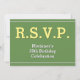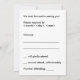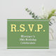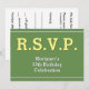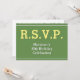 Denna enkla, anspråkslösa design för RSVP-kort har meddelandet "R.S.V.P." på framsidan, tillsammans med ett personligt evenemangsnamn. Den har också ett anpassningsbart RSVP-formulär på baksidan för att mottagaren ska kunna fylla i det. RSVP-kort som detta kan användas för att ta reda på vem som kommer att delta i en babyfest, en middagsfest, en bröllopsfest, en julfest eller någon annan fest.