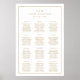 Enkel sittplatskarta för bröllop med elegant och tidlös design med din tvåbokstavsmonogram tillsammans med era namn, datum och sittplatskarta omgiven av en tunn ram i guldton, på vit bakgrund. Mallen har tre kolumner med tolv bord med åtta gäster som exempel, men kan anpassas efter ditt antal bord och gäster. Typsnittsfärgen kan ändras till valfri färg genom att klicka på knappen för anpassning eller genom att göra en begäran om en anpassad beställning genom att skicka ett meddelande till mig. En ren och klassisk design perfekt för ett par som vill ha en traditionell design med en modern touch.